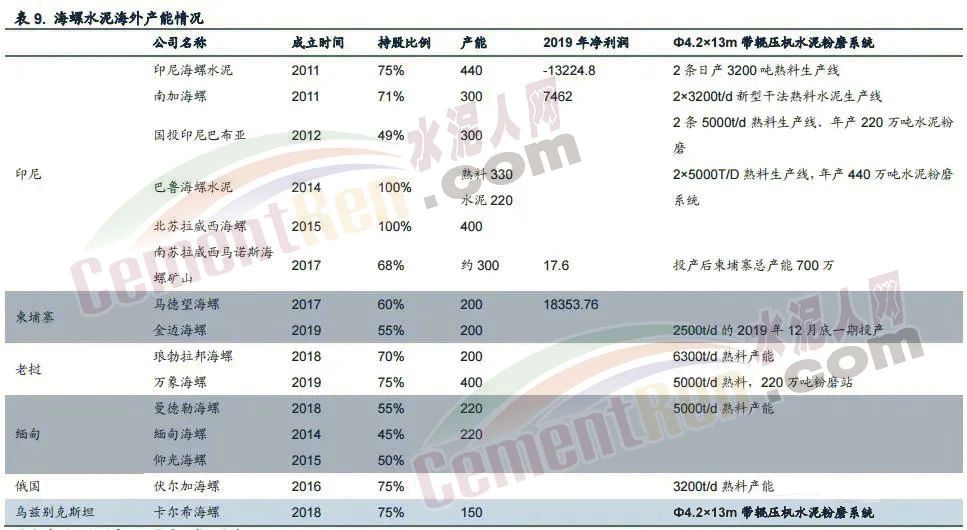 老撾的瑯勃拉邦和萬(wàn)象海螺從17年投產(chǎn)以來(lái)每年都是虧損的,19年兩家公司合計(jì)虧損7000多萬(wàn);緬甸有3個(gè)公司——曼德勒、仰光和緬甸海螺,其中披露過(guò)的曼德勒17年賺了888元(不是萬(wàn)元),18年賠了3371元,19年虧損5000萬(wàn);俄羅斯的伏爾加海螺17年開(kāi)始投產(chǎn),當(dāng)年賠了4000萬(wàn),18年賠了400萬(wàn);19年賺了12萬(wàn)。