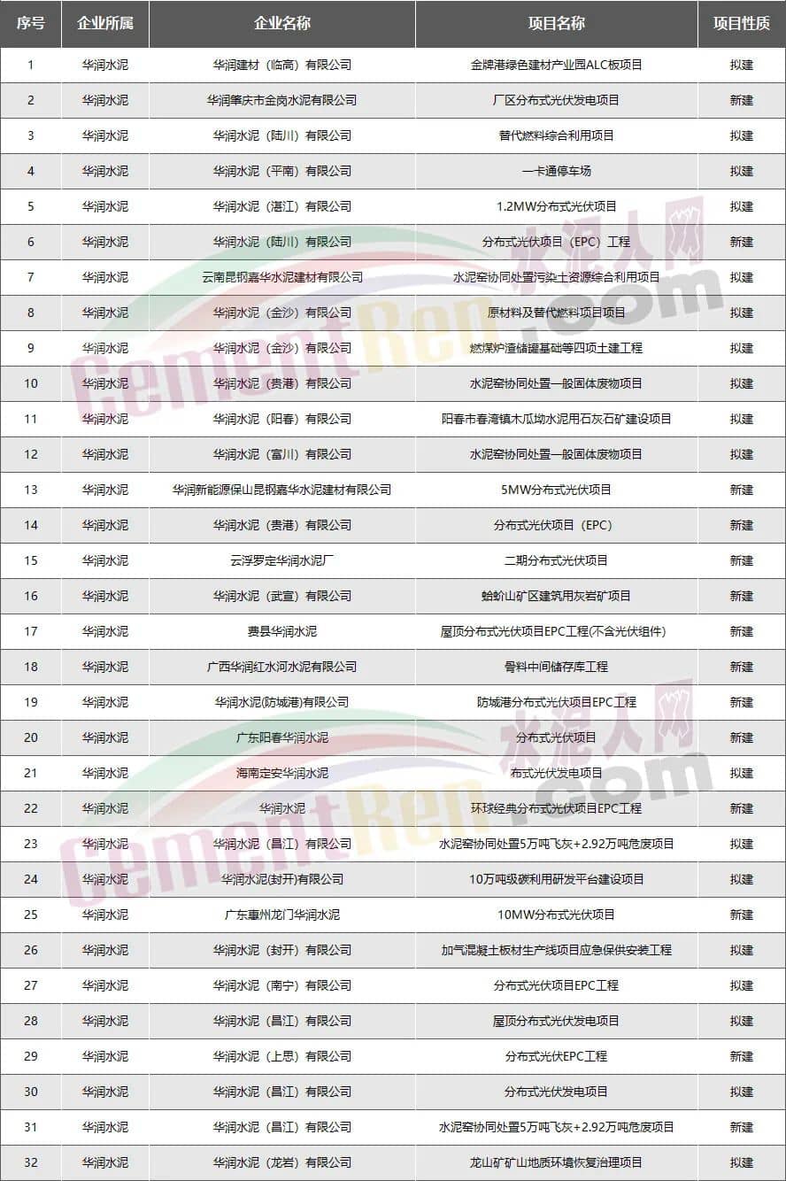 據(jù)水泥人網(wǎng)不完全統(tǒng)計,2023年下半年以來,中建材集團、海螺水泥、華新水泥、華潤水泥、金隅集團、紅獅控股集團、山水水泥、臺泥水泥旗下共有304個新建擬建項目,其中光伏、骨料、混凝土、水泥窯協(xié)同處置、智能化相關(guān)項目居多。