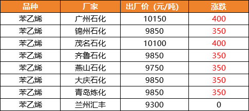 9月以來,苯乙烯漲超1000元/噸,期貨市場日內大漲3.45%,多家化工企業苯乙烯出廠價大漲350-400元/噸,廣州石化和茂名石化出廠價已漲破10000元/噸。