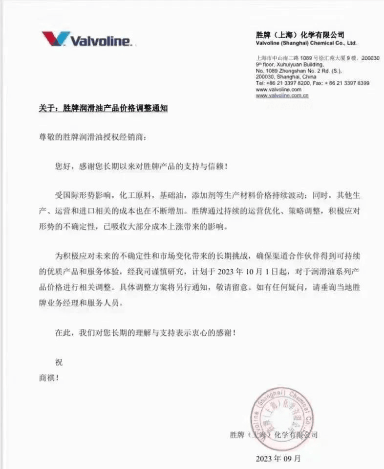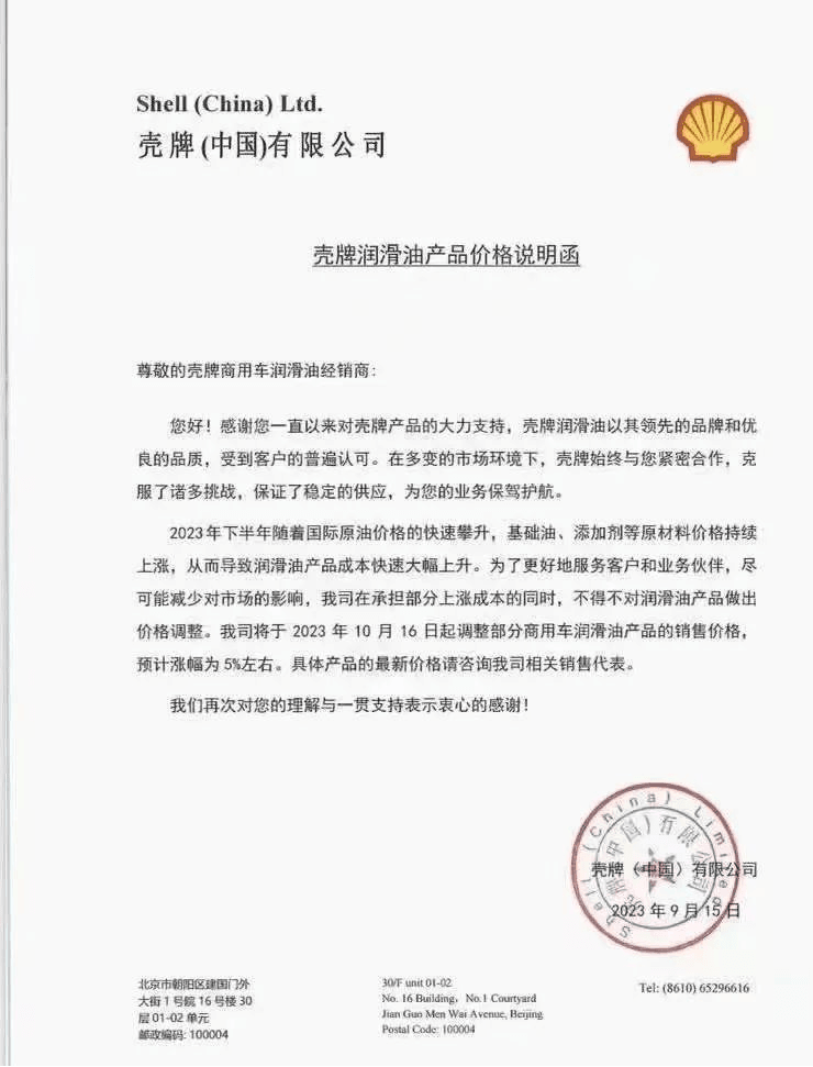 近日,勝牌、殼牌和突破潤滑油發布了關于調整潤滑油產品價格通告,宣布對產品價格進行適度上調,預計漲幅為5%左右。