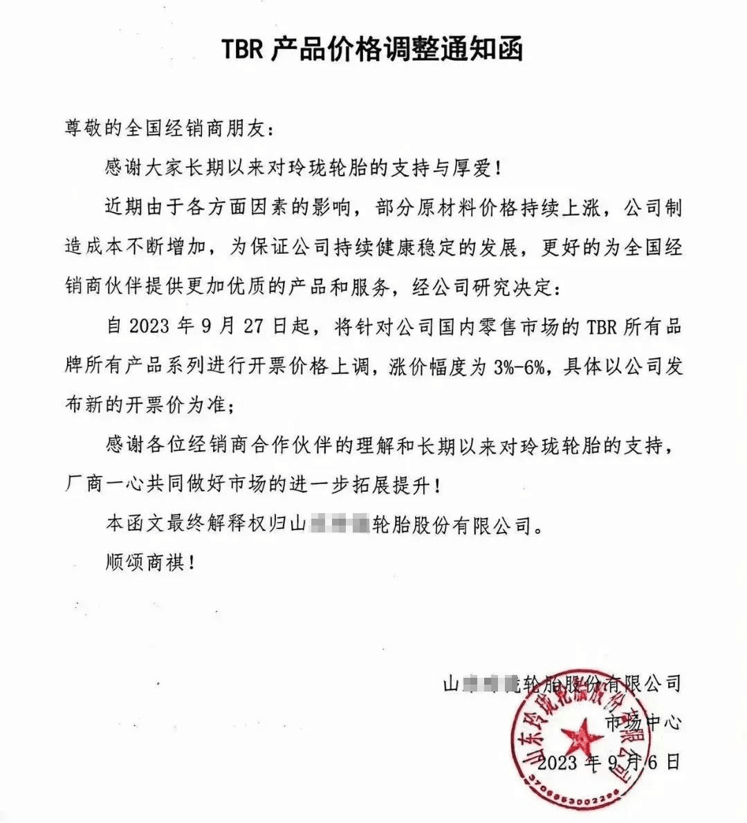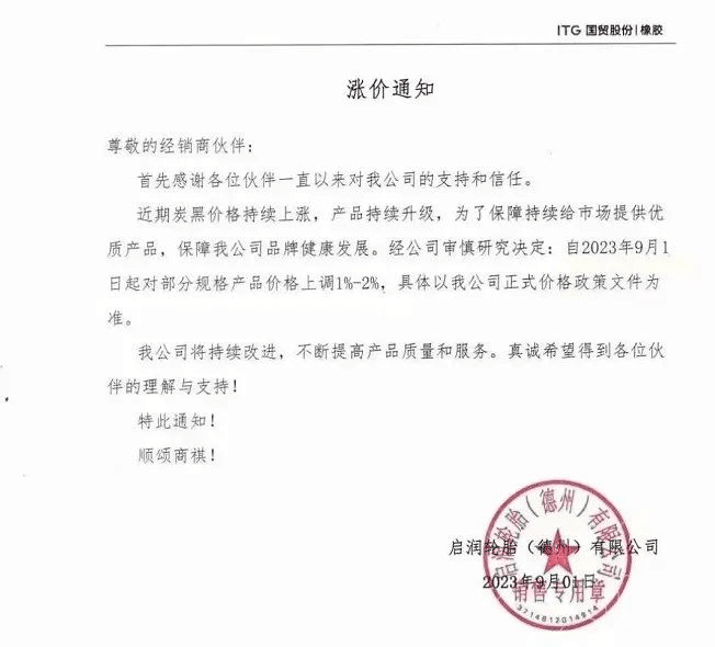 南安市恒發紙品包裝:從2023年9月13日20時起,產品銷售價格在原有價格基礎上上調3%。