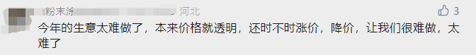 對于各種大宗商品漲價以及各種“不平等”的要求,部分網友也坐不住了,直呼太難了,本來價格就透明,還時不時漲價,真是生意難做。